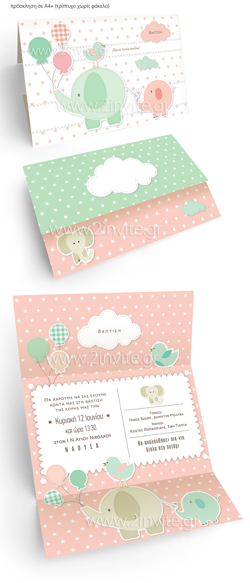 23x33cm (A4+) τρίπτυχο χωρίς φάκελο * 16x22cm πρόσκληση με φάκελο * 17x17cm πρόσκληση με φάκελο