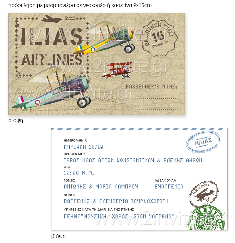- Εκδοχή Πρόσκληση σε Νεσεσσέρ Μπομπονιέρα με εκτυπωμένη κάρτα με τα στοιχεία του προσκλητηρίου διάστασης 9×15 cm