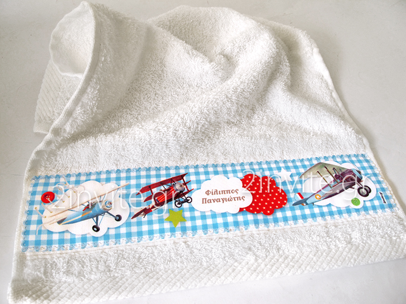 - Εκδοχή Πρόσκληση & Πετσέτα Μπομπονιέρα με εκτυπωμένη κάρτα με τα στοιχεία του προσκλητηρίου διάστασης 10×10 cm