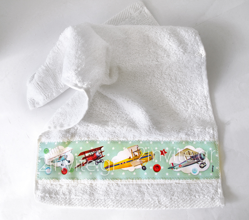 - Εκδοχή Πρόσκληση & Πετσέτα Μπομπονιέρα με εκτυπωμένη κάρτα με τα στοιχεία του προσκλητηρίου διάστασης 10×10 cm