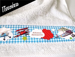 - Εκδοχή Πρόσκληση & Πετσέτα Μπομπονιέρα με εκτυπωμένη κάρτα με τα στοιχεία του προσκλητηρίου διάστασης 10×10 cm
