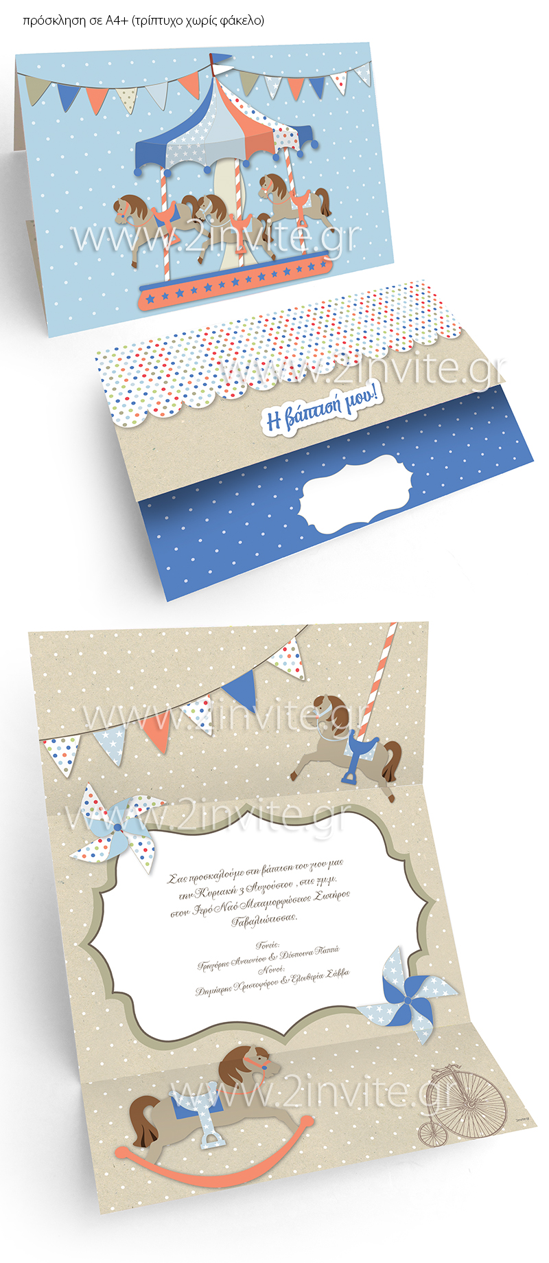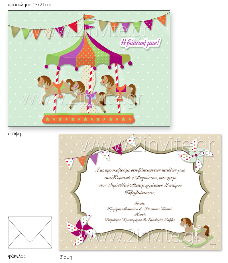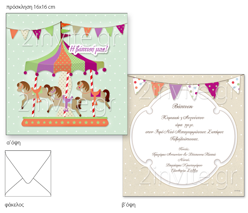 23x33cm (A4+) τρίπτυχο χωρίς φάκελο * 16x22cm πρόσκληση με φάκελο * 17x17cm πρόσκληση με φάκελο